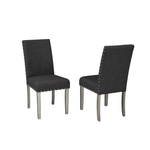 Add some visual interest and comfortable seating to your home with this stylish dining chair. The sturdy rubber wood construction and webbing seat structure of this chair stands up to regular use with ease and the grey, 100% polyester fabric is as practical as it is eye-catching. Accented with a classic nail-head trim for durability and style, this chic chair makes an elegant complement to any dining room, living room or study. The rich grey shade of fabric is neutral enough to blend seamlessly with most colour schemes, while still providing an updated take on the usual brown and black options.