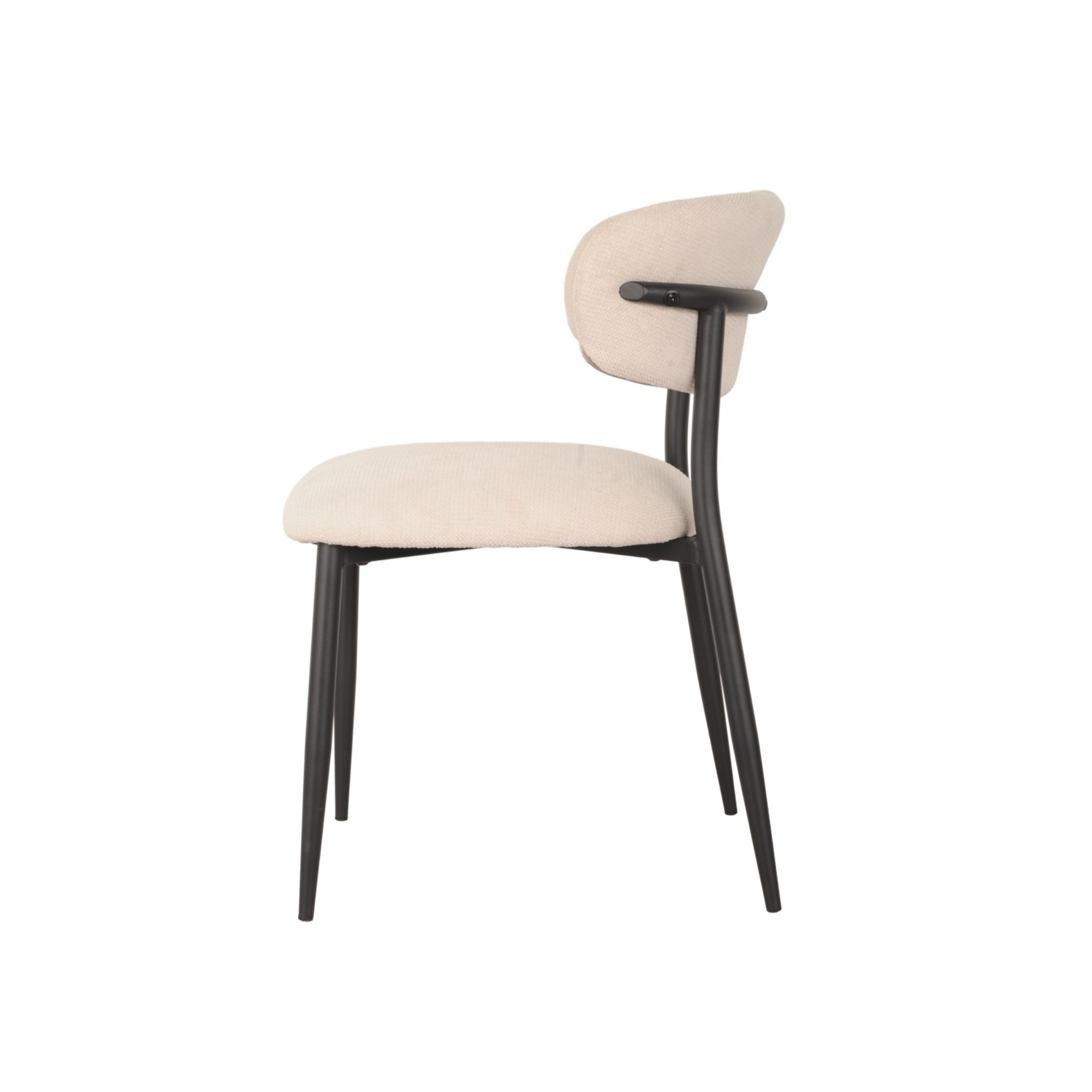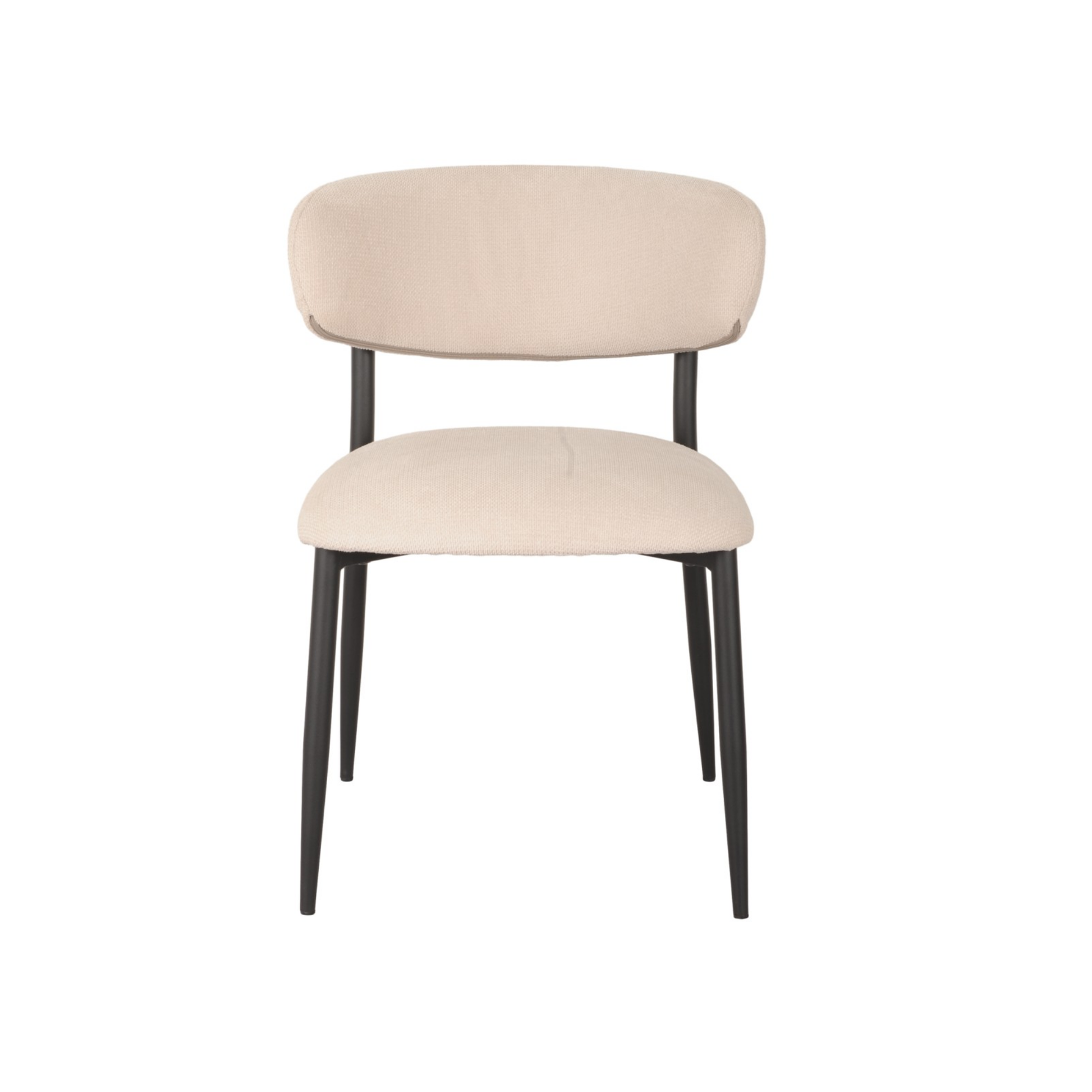 Introducing the Gianna Dining Chair, enhance your dining space with this elegant and modern seating solution. This set includes two beautifully designed chairs, perfect for creating a stylish and cohesive look in your dining room. The contemporary styling of the Gianna Dining Chair will effortlessly complement a variety of interior design themes, adding a touch of sophistication to your space. The curved back provides optimal comfort and support during meals and gatherings. This ergonomic design encourages proper posture and allows you to relax and enjoy your dining experience for extended periods. The splayed powder coated legs of the chair not only contribute to its modern aesthetic but also ensure stability and durability. These legs are designed to withstand regular use and provide a sturdy foundation for the chair, making it ideal for everyday dining. The Gianna Dining Chair is upholstered in premium fabric, offering a luxurious feel and a soft touch. The neutral beige color adds a warm and inviting element to your dining area, effortlessly blending with a range of color palettes. The fabric cover is not only visually appealing but also easy to maintain, making it a practical choice for busy households.