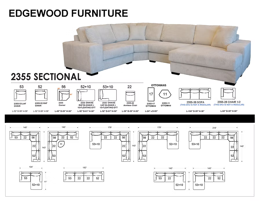 Enhance your living area with the 2355 sectional sofa—a statement piece that combines functionality and modern style.