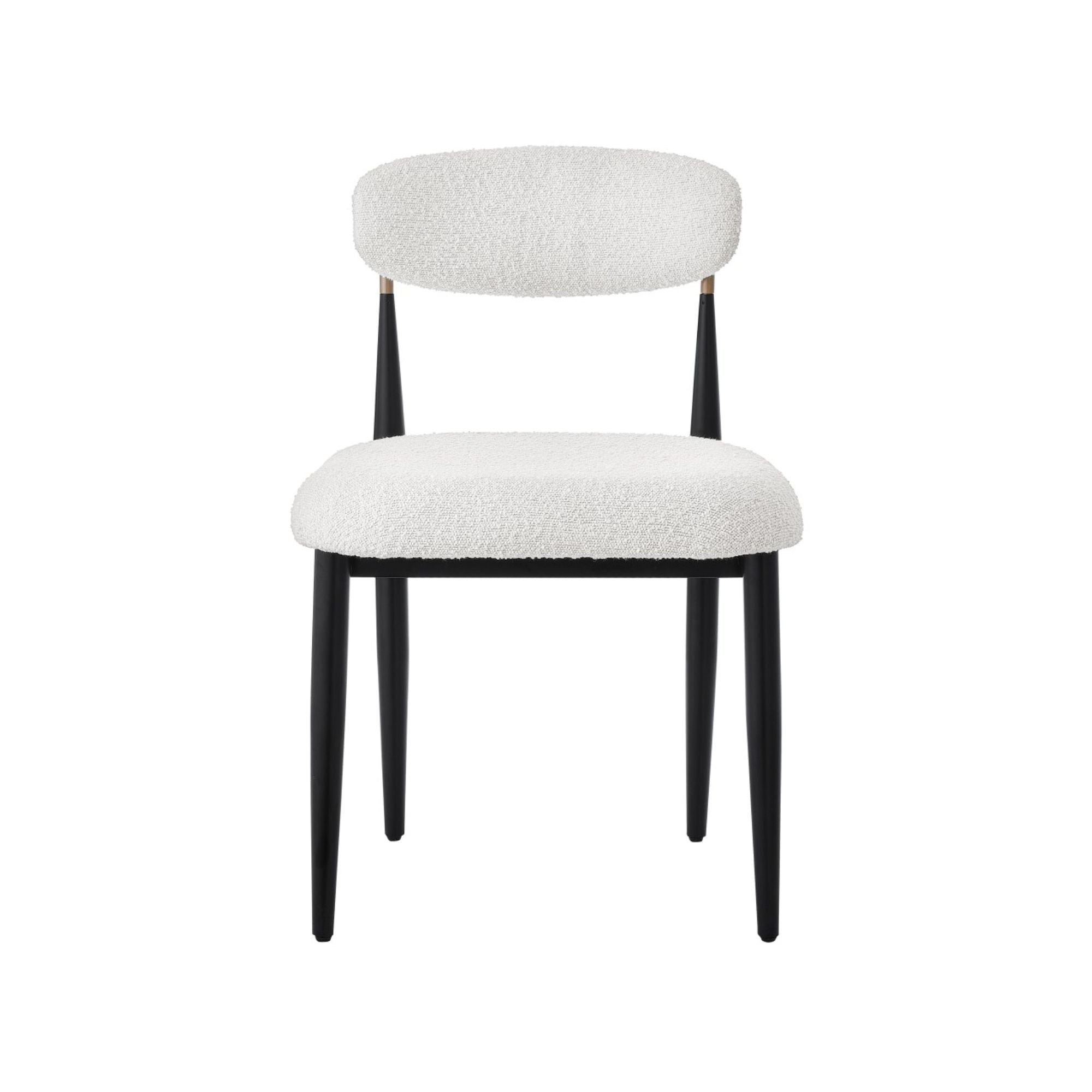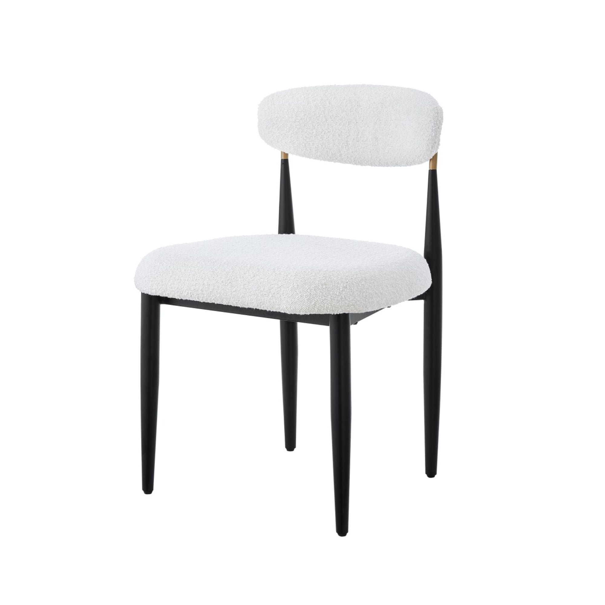 The Kodi Dining Chair Set offers a perfect combination of modern design and cozy comfort. Upholstered in soft 100% polyester fabric, these chairs feature plush cushioning on both the seat and backrest, providing a luxurious feel while maintaining durability. The sleek black metal frame offers sturdy support and a minimalist aesthetic, enhancing the chair’s contemporary appeal. The contrast between the light fabric and dark frame creates a stylish visual balance, making the Kodi Dining Chair an excellent addition to any dining room or kitchen. Whether for everyday meals or formal gatherings, these chairs bring both comfort and sophistication to your space.