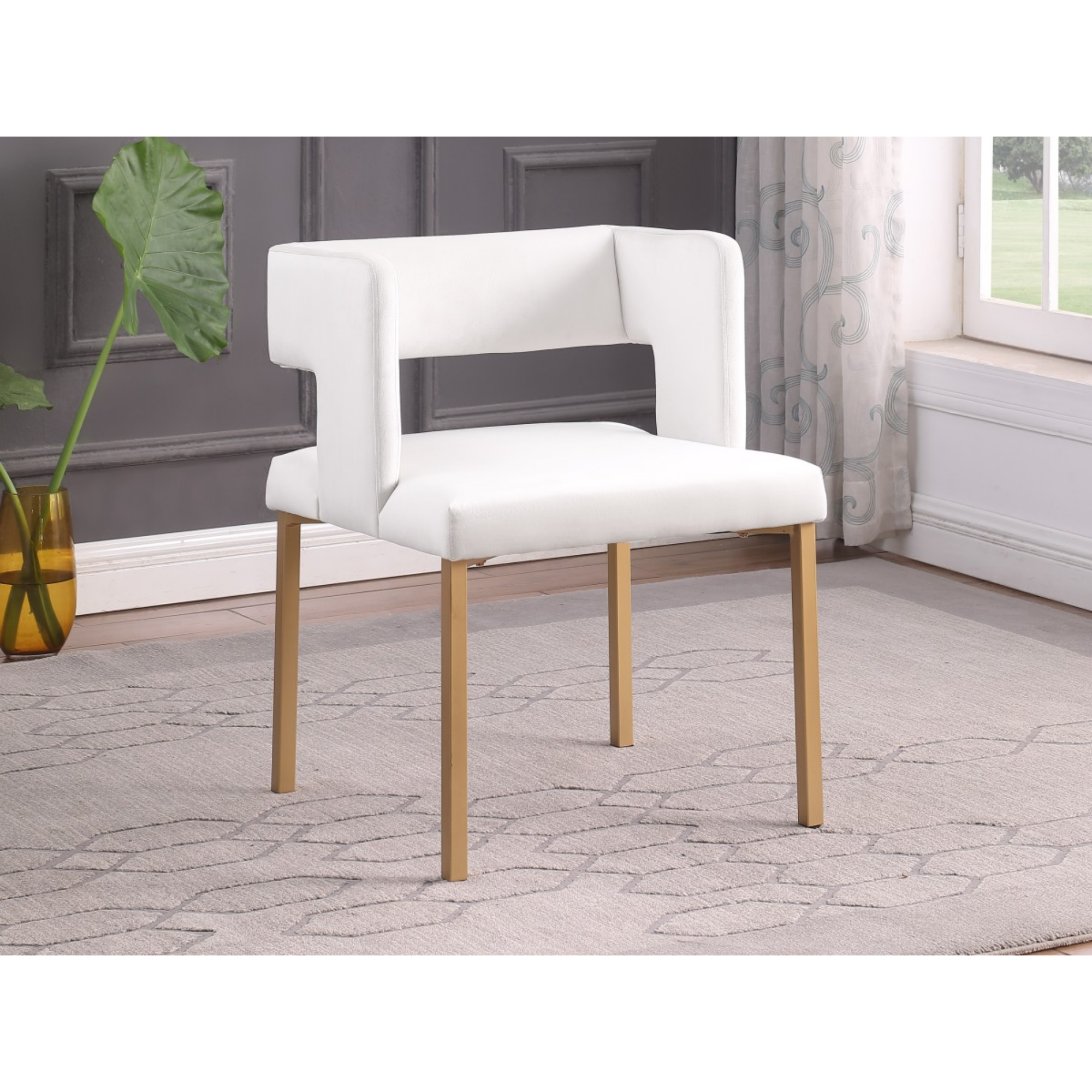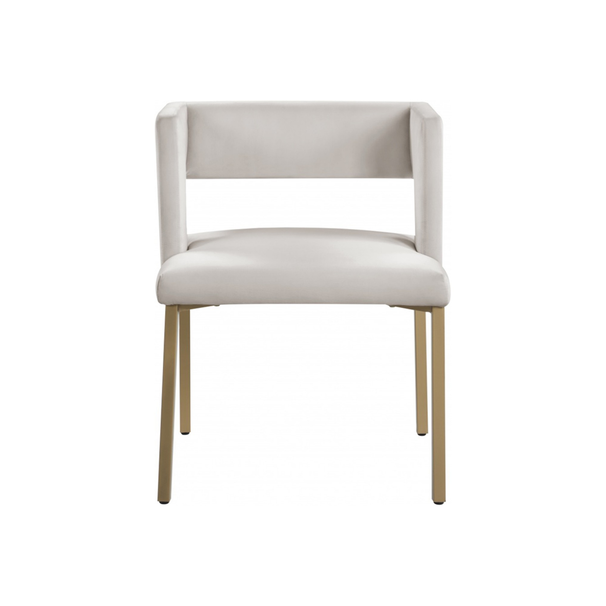 Introducing the elegant and sophisticated Anthony Dining Chair, a stunning set of 2 chairs designed to elevate your dining experience. With its contemporary styling and luxurious features, this chair set is sure to impress your guests and add a touch of glamour to your dining space. Each set includes two beautifully crafted chairs that boast a perfect blend of style and comfort. The sleek and modern design is complemented by the splayed gold-finished legs, which not only provide stability but also add a touch of opulence to the overall aesthetic. With its premium fabric cover, the luscious velvet upholstery creates a plush seating experience, inviting you to sit back and relax while enjoying your meals. The fabric is not only visually appealing but also feels incredibly soft to the touch, adding a sense of luxury to every dining occasion. Whether you're hosting a formal dinner party or enjoying a casual family meal, the Anthony Dining Chair is designed to impress. Its contemporary styling seamlessly blends with various interior design themes, making it a versatile choice for any dining room.