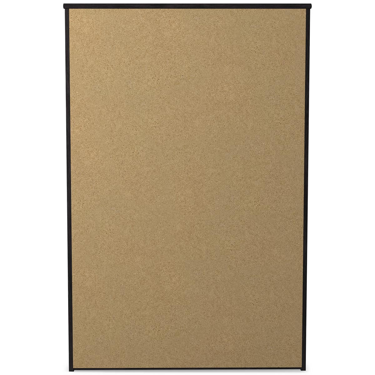 With its clean-lined look and modern attitude, this chest of drawers is a fresh style awakening. A warm charcoal hue over replicated oak grain easily complements other furniture finishes. Smooth drawer fronts with antiqued pewter-tone handles complete the aesthetic.