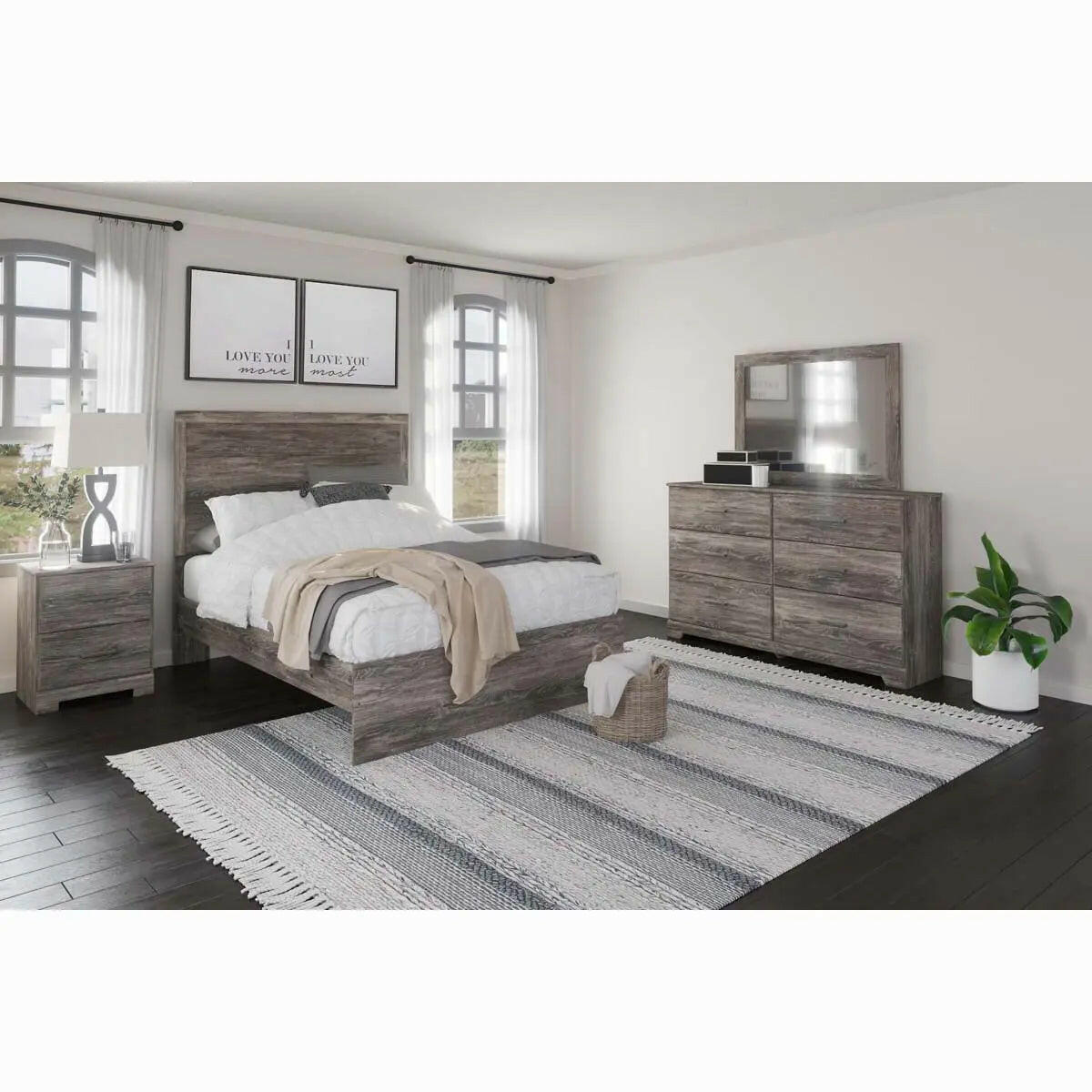 With its clean-lined look and modern attitude, the Belcahime bedroom set is a fresh style awakening. A warm gray hue over replicated oak grain easily complements other furniture finishes. The simple, unadorned profile is given depth and dimension with the addition of plank-style moulding—proof that beauty lies in the details.