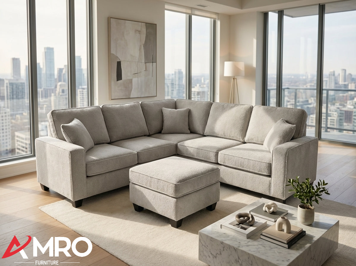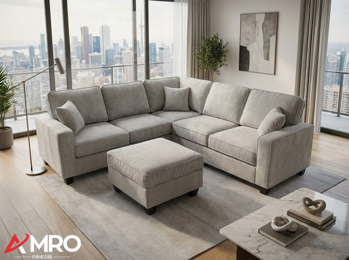 Transform your living room with this modern L-shaped sectional sofa, designed for comfort, style, and everyday functionality. Upholstered in soft, durable Toscana Grey fabric, this sectional brings a clean, contemporary look that complements any home décor. The spacious L-shaped design offers plenty of seating for family lounging, movie nights, or entertaining guests.