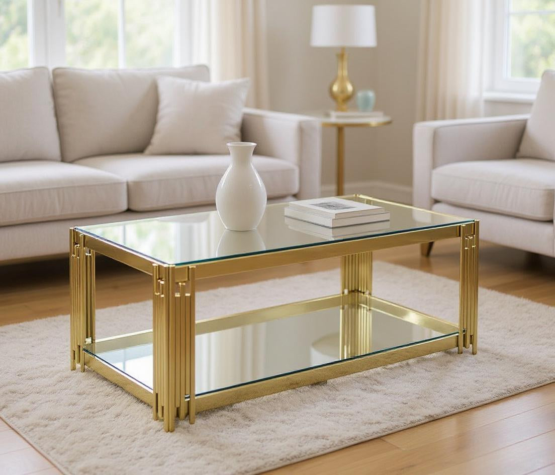 That coffee table certainly makes a statement! It's a gorgeous piece, often described using terms like Glam, Modern, or Hollywood Regency style.