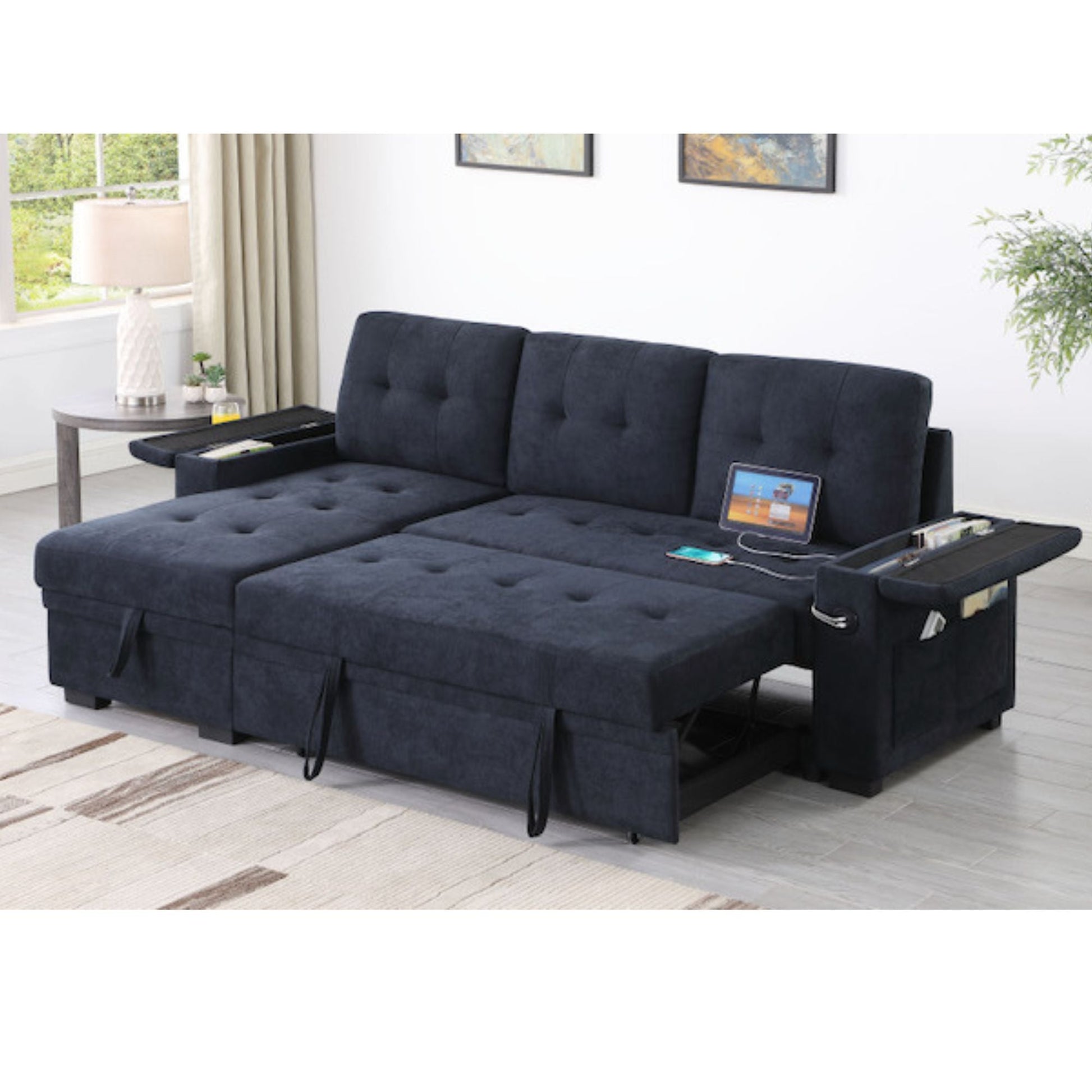 • Convertible Sleeper Design – Effortlessly transforms from a cozy sectional into a spacious bed, perfect for overnight guests.