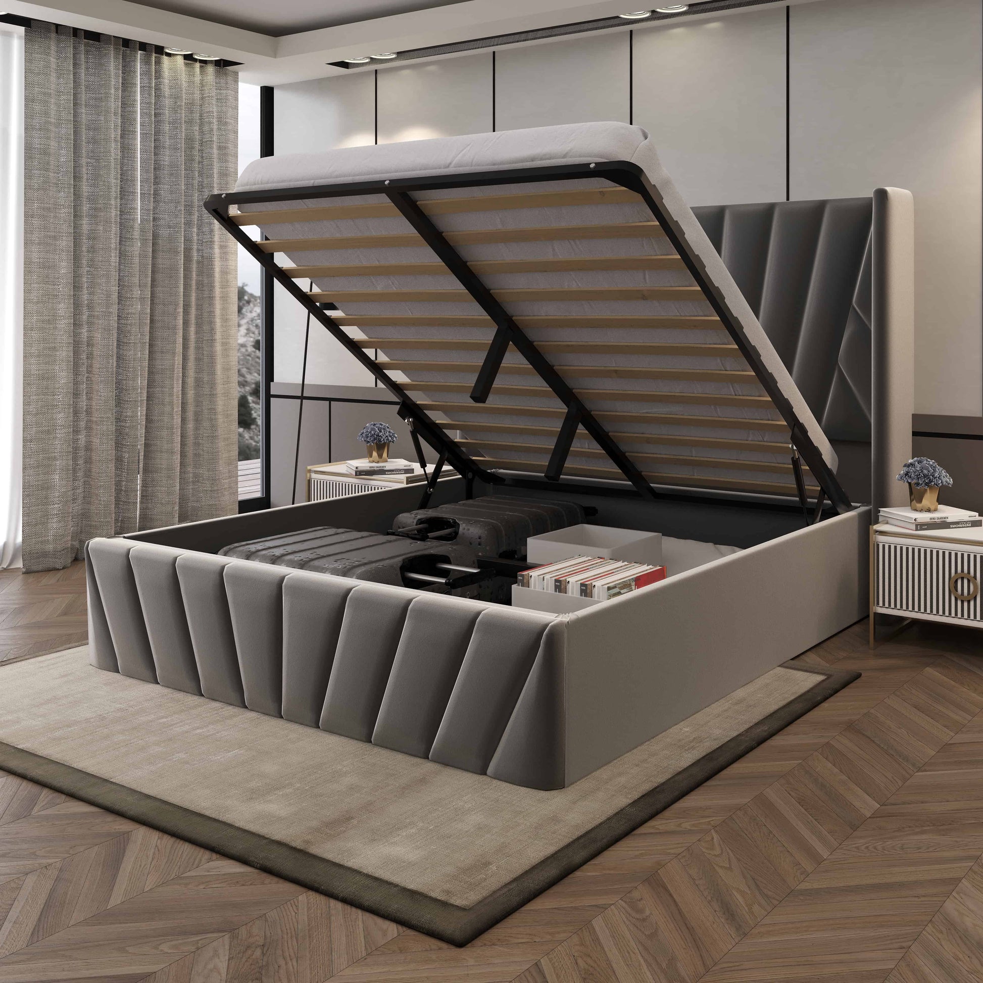 Eva Lift-Up Storage Bed – Charcoal Gray