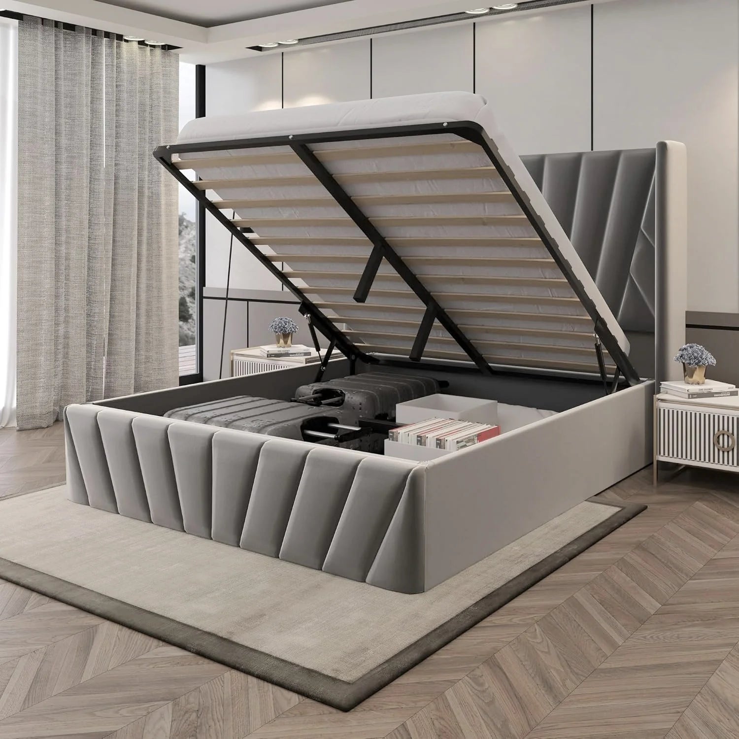 Innovative and practical, the Velets Eva bed features a hydraulic gas lift storage system, maximizing bedroom space without compromising style or comfort. Available in King and Queen sizes, it offers ample sleeping space. Easy assembly, various colors, and sizes make it perfect for modern bedrooms.