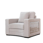 Transform your living space with Havana Loveseat. The Loveseat is all upholstered in sumptuous beige fabric with Silver accents. The cohesive design creates a harmonious and stylish atmosphere, ensuring your living room becomes a haven of comfort and luxury. Perfect for both modern and classic interiors, the Havana effortlessly elevates your home's decor.