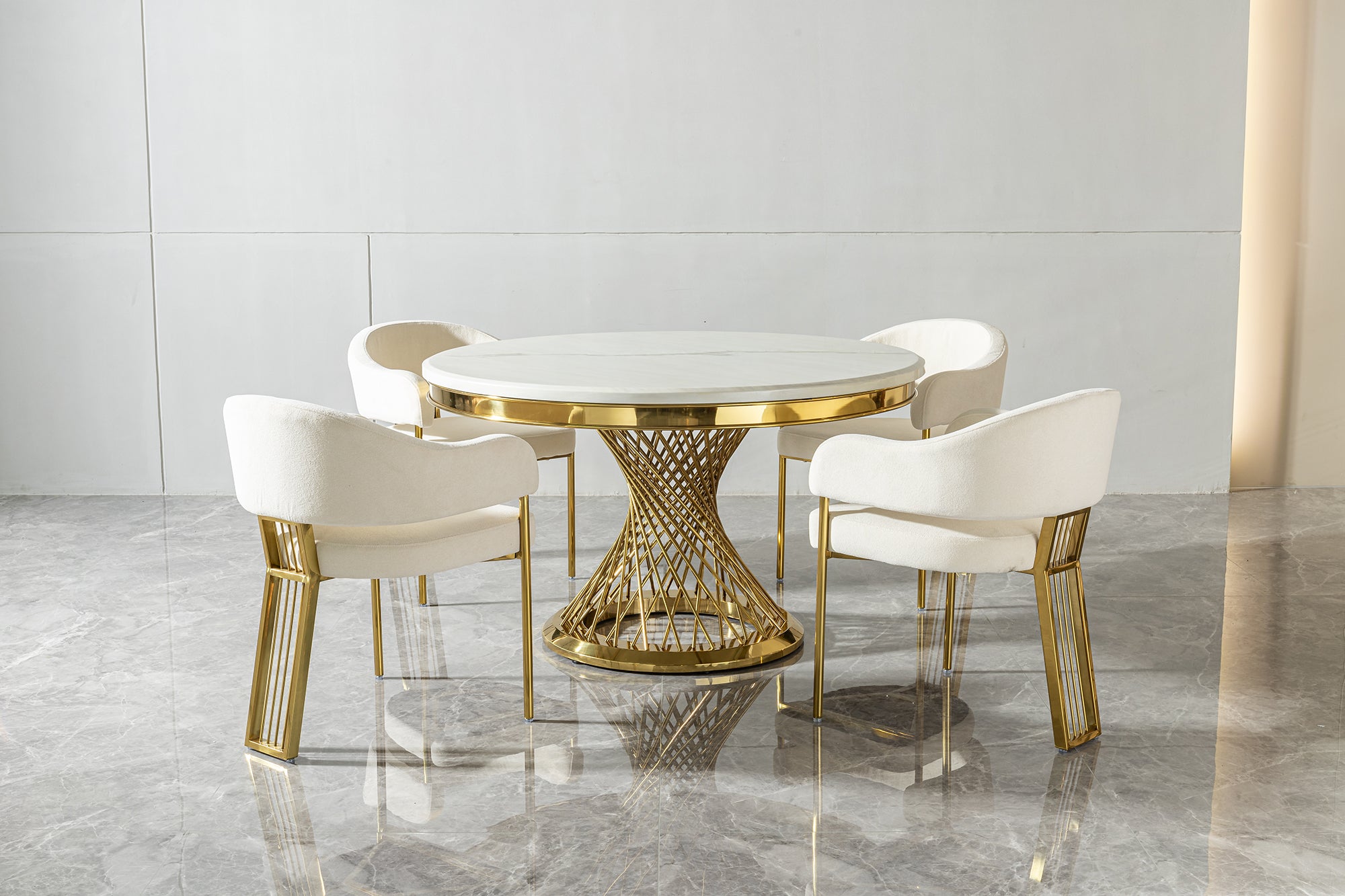 Kim Gold Dining Table Set – Modern Round Marble Dining Set with Gold Base