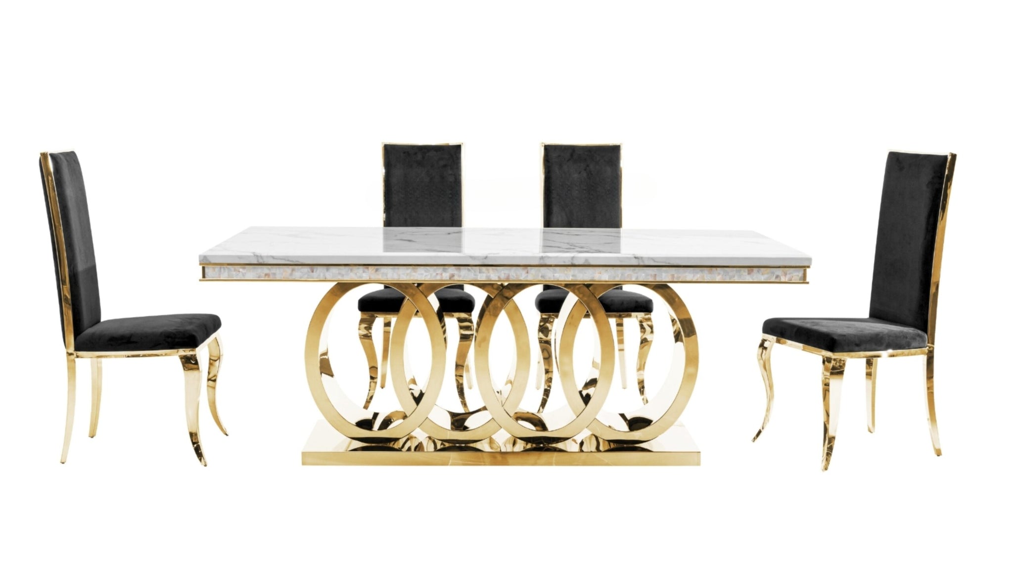 Luxury Ottawa Gold Dining Table Set – White Marble Top & Black Velvet Chairs