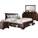 The Milton Collection exudes classic charm, particularly with transitional styling and a grey wood finish; it also offers a variety of functionality. The bed's sleigh headboard with panel detailing catches the eye right away, while a low-profile footboard with two drawers (and four more fitted into the side railings) provides plenty of storage. Picture frame detailing, French-front and English-back dovetail constructed easy-glide drawers, and antique-style silver toned drop handles make the Milton one of the most intelligently crafted beds on the market. Also available in a warm cherry brown finish.