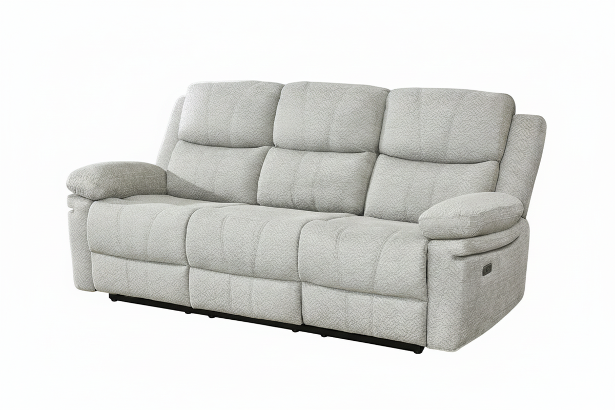 The Thea Recliner Sofa blends plush comfort with practical design, making it an inviting addition to any living room. Upholstered in soft, textured fabric, this generously cushioned sofa features high-back support and deep seating for ultimate relaxation. The dual power reclining seats allow you to kick back with ease, while the built-in centre console offers convenient storage and dual cup holders—perfect for movie nights or casual lounging. With its padded armrests and clean, contemporary lines, the Thea Recliner Sofa combines everyday functionality with cozy sophistication.
