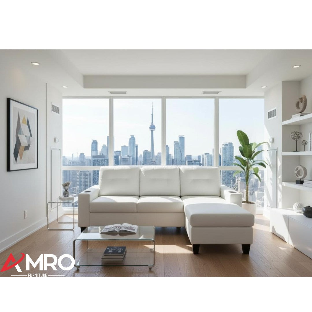 This PU Reversible Sectional Sofa with Cup Holder is perfect for those looking for a stylish and sturdy furniture piece. This sectional sofa is constructed with premium PU anti-scratch leather for a durable and secure finish. It also features a reversible chaise, so you can keep it on either the left or the right side. For added comfort, this sofa is equipped with very soft and comfortable back cushions and cup holders in both arms.