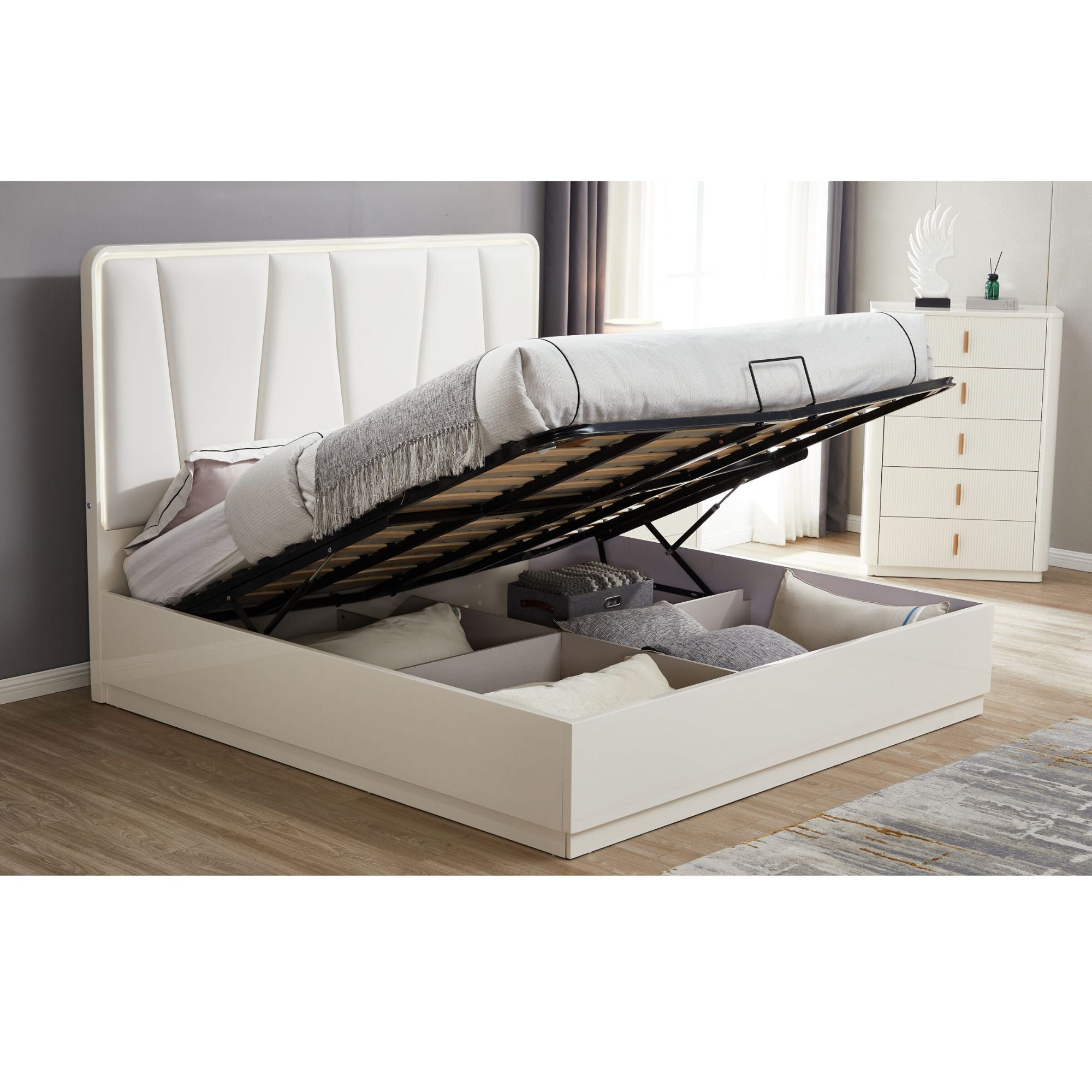 This is a Modern Glam bedroom set in a high-gloss white finish.This set is perfect for a chic, high-end, and contemporary master bedroom.