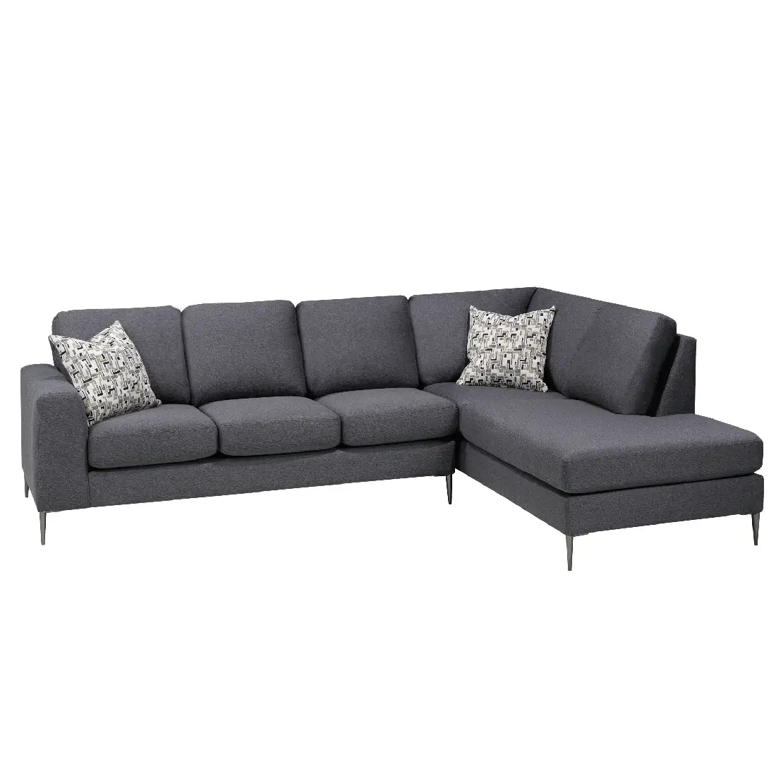 Elevate your living space with the Jargon Sectional, designed for both style and ultimate comfort. This L-shaped couch is the perfect centerpiece for movie nights, family gatherings, or simply stretching out with a good book. Its clean lines and sleek metal legs give it a modern edge, while the plush, deep cushions ensure a cozy seat for everyone. Two included accent pillows add a touch of personality.