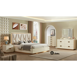 Modern Glam bedroom set featuring a luxurious, neutral aesthetic.